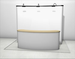 Den Messestand gibt es gebogen oder gerade. Die Breite gibt es in 75, 150, 225, 300 cm. Verschiedene Messestände lassen sich zu grossen Gebilden kombinieren.